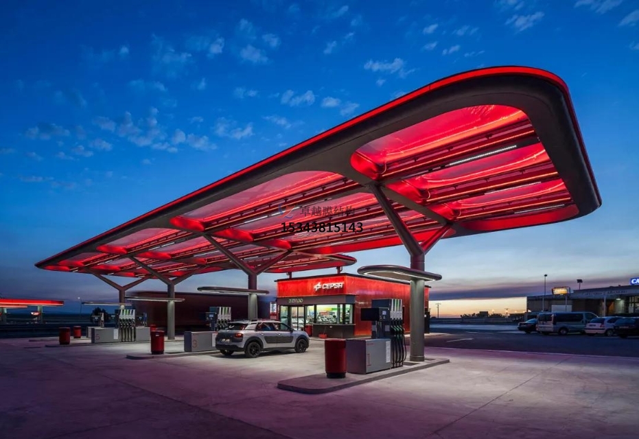 在現(xiàn)代社會,加油站作為能源補(bǔ)給的關(guān)鍵節(jié)點(diǎn),其設(shè)施的設(shè)計(jì)與建設(shè)不僅關(guān)乎功能需求,更與美觀、環(huán)保和可持續(xù)發(fā)展緊密相連。加油站膜結(jié)構(gòu)罩棚的出現(xiàn),為這一領(lǐng)域帶來了全新的解決方案,以其獨(dú)特的優(yōu)勢在眾多建筑形式中脫穎而出。