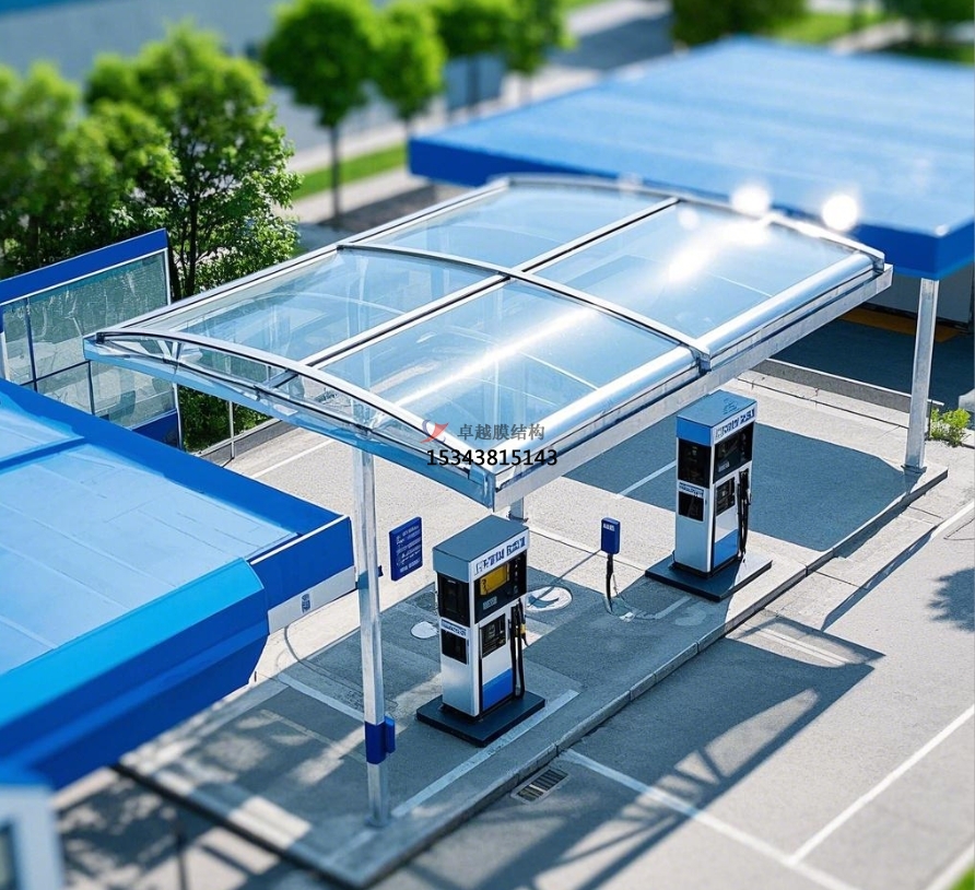 支 撐系統(tǒng)則根據(jù)加油站的規(guī)模和設(shè)計(jì)需求,選用鋼結(jié)構(gòu)或鋁合金結(jié)構(gòu)。鋼結(jié)構(gòu)支撐具有較高的強(qiáng)度和穩(wěn)定性,能夠適應(yīng)各種復(fù)雜的地形和氣候條件,通過合理的力學(xué)設(shè)計(jì),將膜材所承受的荷載均勻傳遞至基礎(chǔ)。鋁合金結(jié)構(gòu)則以其輕質(zhì)、耐腐蝕的特點(diǎn),在一些對重量有嚴(yán)格要求或環(huán)境較為惡劣的地區(qū)備受青睞,減輕了基礎(chǔ)的承載壓力,同時(shí)降低了維護(hù)成本。