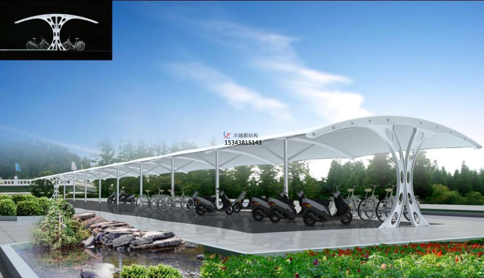 項目結(jié)構(gòu)形式:骨架式膜結(jié)構(gòu)車棚