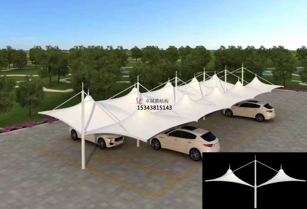 跨度大:由于膜材具有良好的抗拉性能和柔韌性,加上合理的支撐結(jié)構(gòu)設(shè)計,使得張拉膜膜結(jié)構(gòu)停車棚可以實(shí)現(xiàn)較大的跨度,能夠滿足不同規(guī)模停車場的需求。