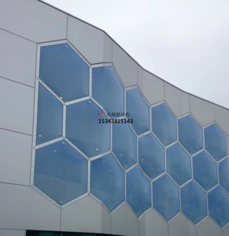 3、輕質:相比于傳統的玻璃材料,ETFE膜更加輕盈,能夠減少建筑的自重,降低對建筑結構的要求,從而減少建筑材料的使用量和成本。同時,它的輕質特性使得它可以更加靈活地呈現各種形狀和曲面設計,為建筑帶來豐富的創(chuàng)意和個性。