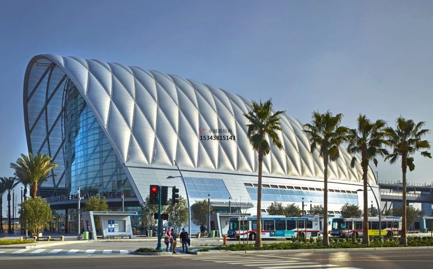 ETFE強度無法滿足設計要求時,可以采用ETFE結合鋼索的方式,其中最簡單的是采用單向鋼索,這些鋼索根據膜的造型可以平行布置或輻射布置。