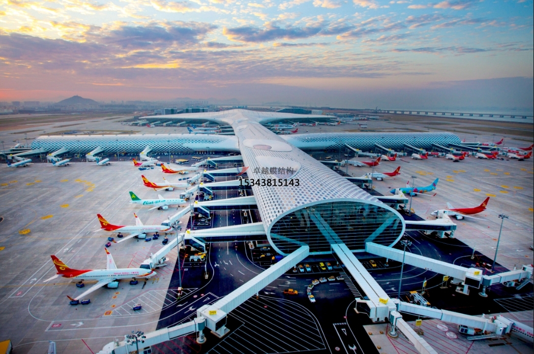 ETFE氣枕具有高度透明性,每層膜的透明度為90-95%,其透明度呈現(xiàn)于大部分太陽光譜中,廣泛應(yīng)用于機場,高鐵站,商業(yè)廣場,城市建筑景觀等各類標(biāo)志性建筑屋面系統(tǒng)及外立面裝飾,尤其是結(jié)合LED燈光效果將各類結(jié)構(gòu)設(shè)施表現(xiàn)出無限的光彩和亮麗。