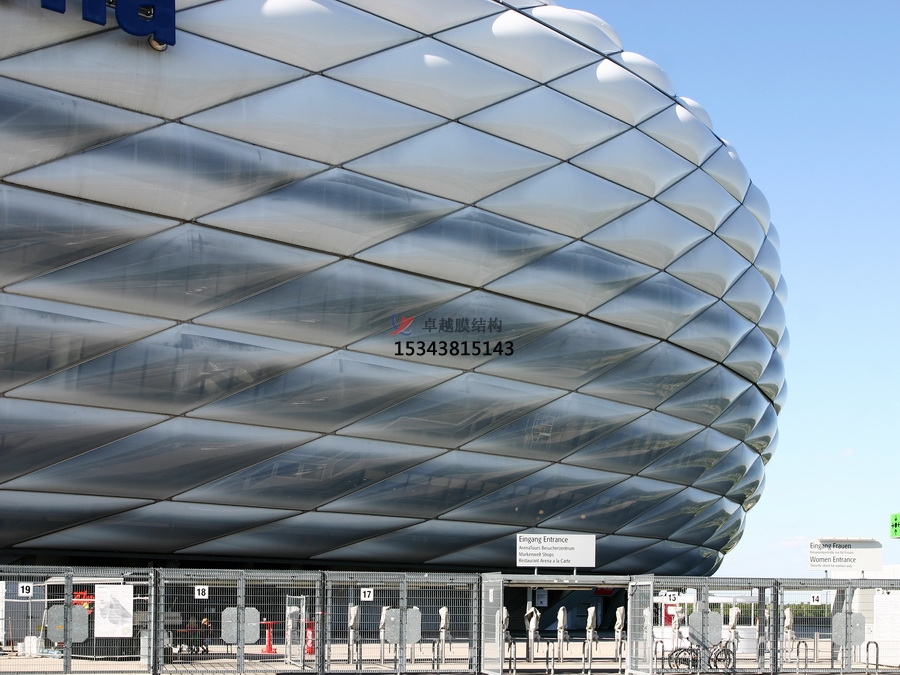 8)生產(chǎn)廠(chǎng)家對(duì)ETFE膜材料的質(zhì)量保證期為10年,實(shí)際的使用壽命可超過(guò)20年。