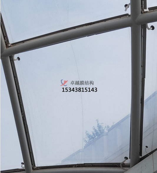 2、展開膜體前,在平臺上鋪設臨時布料,以保護膜材不被損傷及膜材清潔,嚴格按確定的順序展開膜體。打開包裝前應校對包裝上的標記,確認安裝部位,并按標記方向展開,盡量預防展開后的膜體在場內(nèi)移動。在展開的膜面上行走時要穿軟底鞋,不得佩帶硬物,以防膜體受到刮傷。