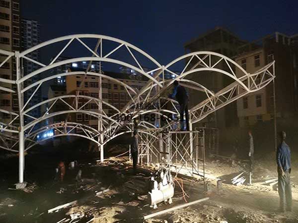 2、甲方提供現(xiàn)場(chǎng)安裝門球場(chǎng)膜結(jié)構(gòu)罩棚/頂棚足夠場(chǎng)地,要保證火車及升降車出入道路暢通。
