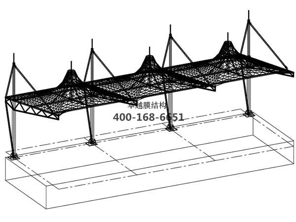 本工程膜材采用白色高端國產(chǎn)星益達PVDF高自潔環(huán)保建筑膜材,鋼結(jié)構(gòu)采用更好的標準Q235B鋼材,表面采用酚醛底漆處理,面漆采用白色鋼結(jié)構(gòu)專用快干磁漆。