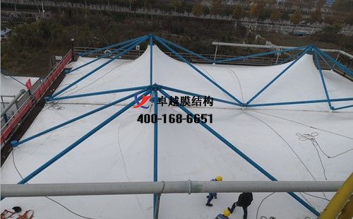 污水池反吊膜工程項目,11月10日我們卓越膜結構公司人員開始到現(xiàn)場施工。2018年11月20日竣工。