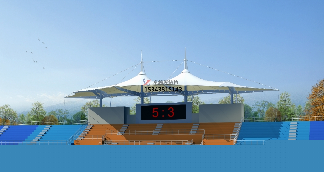 膜結構體育看臺的帽頂是整個結構的重要組成部分,它不僅能夠為觀眾提供遮陽擋雨的功能,還能增強整個結構的美觀度和視覺效果。