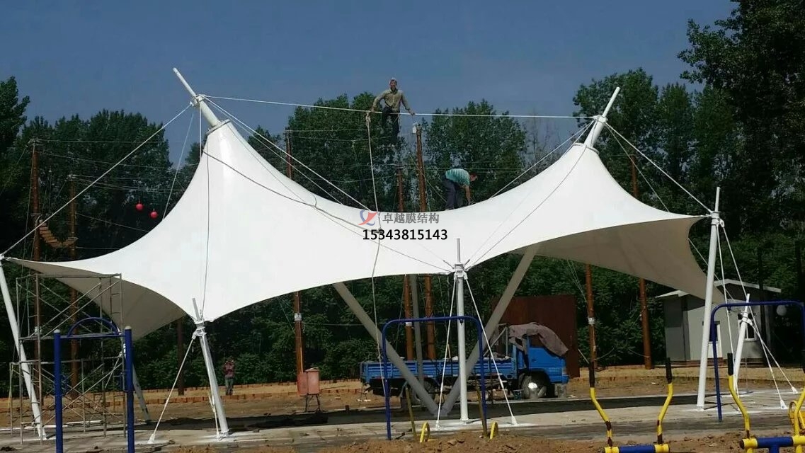膜結(jié)構(gòu)遮陽棚前期規(guī)劃:膜結(jié)構(gòu)遮陽棚前期需要根據(jù)使用需求、環(huán)境因素來做規(guī)劃。明確遮陽棚的使用場景和功能需求,例如是用于商業(yè)廣場、停車場、體育場,還是私人庭院等。不同的使用場景對遮陽棚的規(guī)模、形式和功能有不同的要求??紤]遮陽棚所處的地理位置、氣候條件等。如在多風地區(qū),要加強結(jié)構(gòu)的抗風設(shè)計;在陽光強烈的地區(qū),需選擇具有良好遮陽和隔熱性能的膜材。同時,還需考慮周邊的建筑風格和景觀環(huán)境,使遮陽棚與周圍環(huán)境相協(xié)調(diào)。