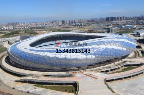 2、U形夾板連接 對受力大的膜,邊緣索直徑較大,長度較長,索頭錨具為熱鑄或冷鑄,索頭尺寸大,難于直接穿膜套,可采用U形件夾板連接節(jié)點(diǎn)。