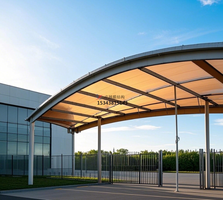 膜結(jié)構(gòu)大門還具備良好的遮陽功能。炎炎夏日,膜材能夠?yàn)榫用駬纹鹨黄鍥龅目臻g,無論是步行進(jìn)出小區(qū)的居民,還是在門口短暫停留等待的人員,都能免受烈日的炙烤。部分膜材具有一定的透光性,在遮陽的同時(shí),還能讓自然光適度透入,使大門內(nèi)部空間明亮舒適,避免因光線不足而產(chǎn)生的昏暗壓抑感。此外,膜結(jié)構(gòu)大門還可以根據(jù)需要設(shè)置一些附屬設(shè)施,如在大門兩側(cè)安裝宣傳欄,用于發(fā)布小區(qū)通知、活動(dòng)信息等,方便居民及時(shí)了解小區(qū)動(dòng)態(tài)。