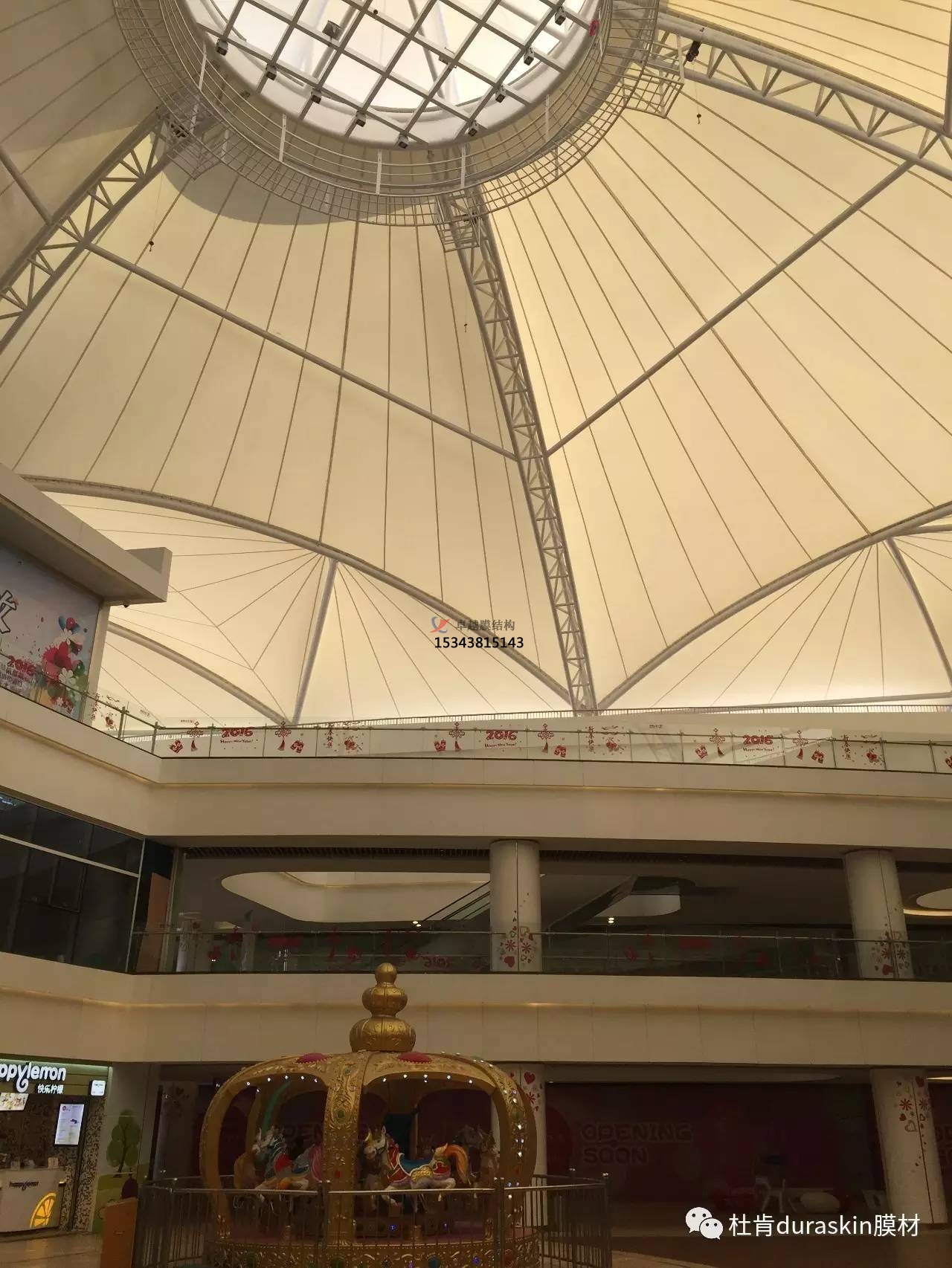 利用膜結構輕巧,別致的造型建造各種半封閉,全封閉的不行空間,使其形成全天候的建筑空間,提供防風雨,防日曬等人工環(huán)境,并有較好的廣告標識效果,因此是步行街改造和新建的絕佳選擇。