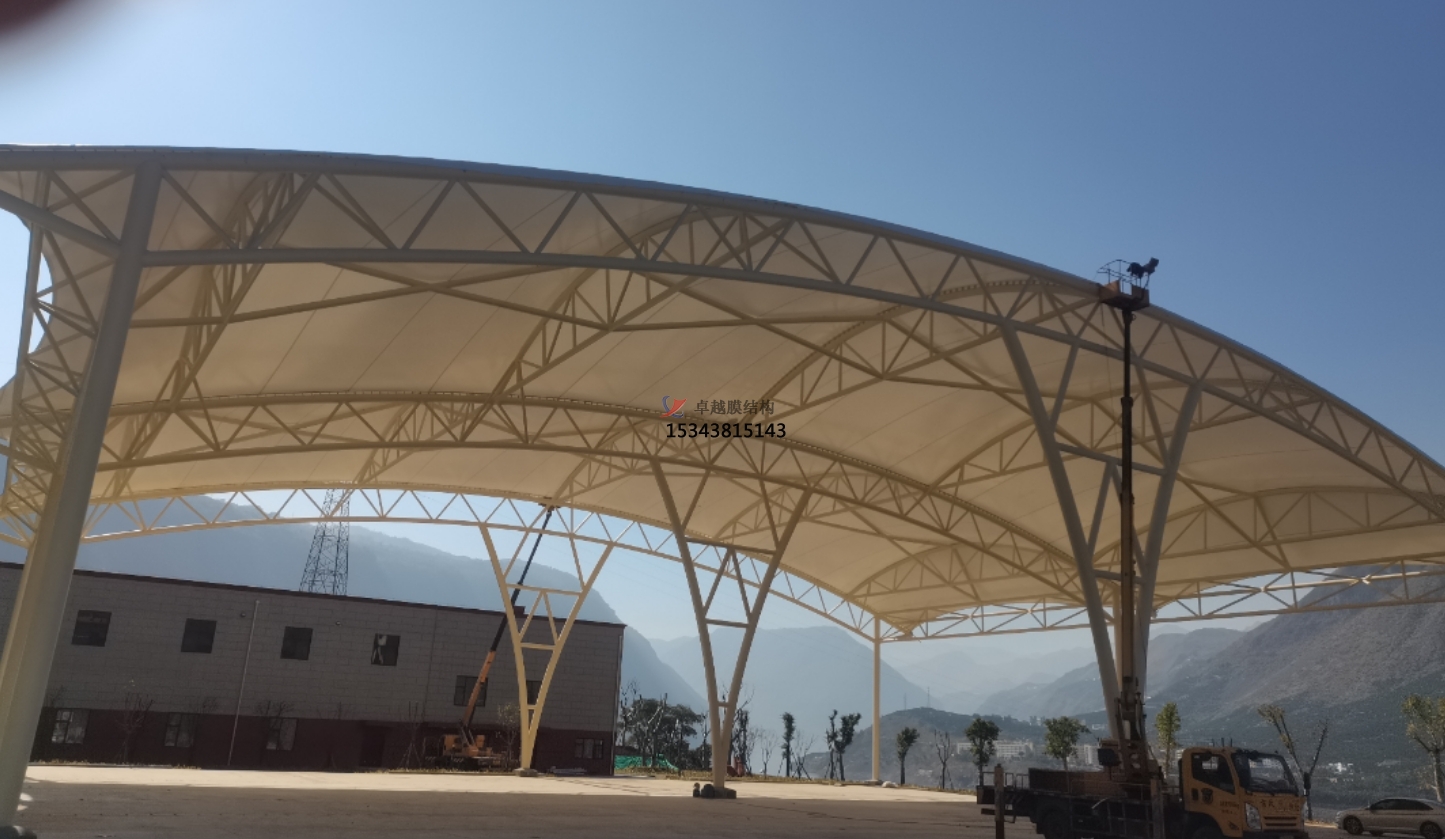 膜結(jié)構(gòu)材料具有較好的耐久性和自潔性。一般情況下,只需要定期進(jìn)行簡單的清潔和檢查,不需要像傳統(tǒng)建筑結(jié)構(gòu)那樣頻繁地進(jìn)行大規(guī)模的維修和保養(yǎng)。選擇具有自潔性的膜材,表面的自潔涂層可以在雨水的沖刷下自動清潔灰塵和污漬,大大降低了維護(hù)成本。