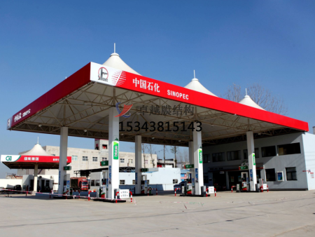 該加油站的拉膜結(jié)構(gòu)采用了高強(qiáng)度聚酯纖維材料,具有輕質(zhì)、耐腐蝕、抗紫外線等特點(diǎn)。膜結(jié)構(gòu)的外表面采用了特殊的防水涂層,能夠有效地防止雨水侵入。此外,膜結(jié)構(gòu)內(nèi)部采用了高強(qiáng)度鋼材,保證了建筑的安全穩(wěn)定。