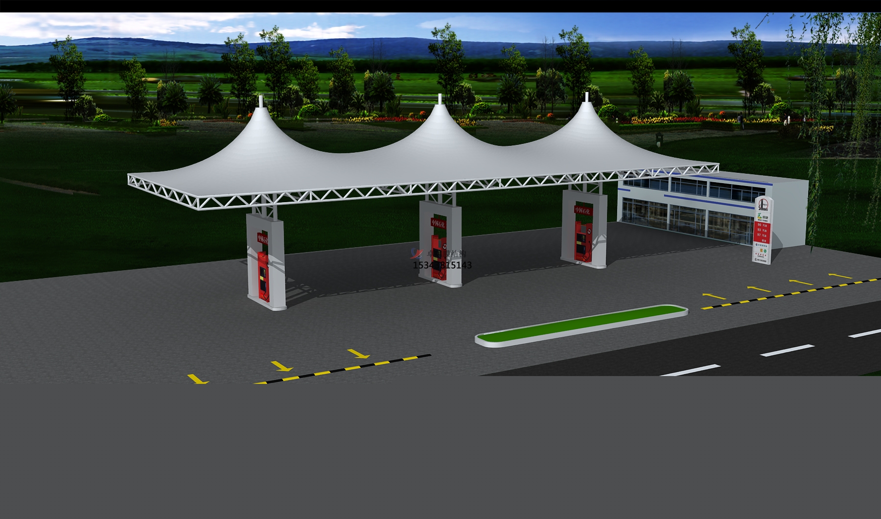 3、中國(guó)石油(河南平頂山第加油站)張拉膜雨棚/頂蓋