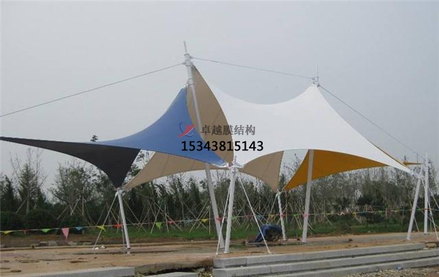 張拉膜景觀立柱底腳選用10mm厚鋼板與預埋件結實焊接,在裝置張拉膜景觀的時分將預埋件用混凝土澆筑后,用螺栓與立銜接,抗風系數(shù)高,添加張拉膜景觀全體結實程度,能反抗12級以上颶風來襲4、張拉膜景觀內(nèi)部選用Φ38鍍鋅圓管與張拉膜景觀結構焊接,加強棚頂部強度,可讓棚內(nèi)感覺寬闊亮堂,??寇囕v輕松便利,完全符合張拉膜景觀制造要求標準。
