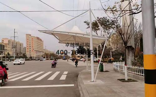 項目地點:三門峽澠池黃河路與新華路交叉口 展開面積:200㎡ 膜材型號:浙江星益達PVDF1050 完工日期:2019年11月28日 項目功能:待轉(zhuǎn)區(qū)非機動車遮陽,廣告亮化" />