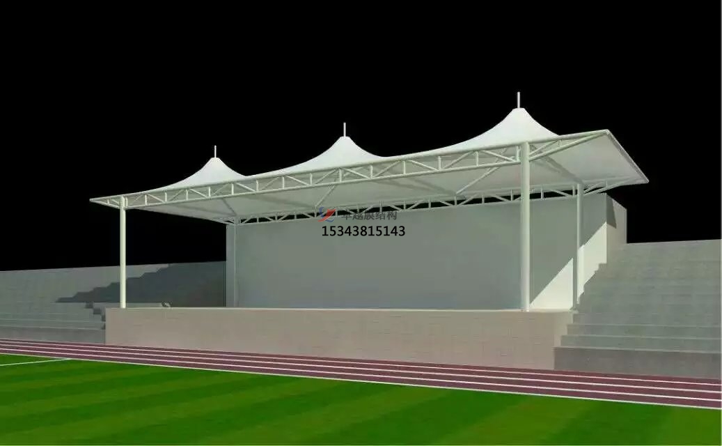 張拉膜看臺(tái)主要用于各類(lèi)地方體育場(chǎng)主席臺(tái)雨棚,各類(lèi)學(xué)校體育場(chǎng)看臺(tái)雨棚遮蓋,我公司是國(guó)內(nèi)較早從事大懸挑張拉膜結(jié)構(gòu)看臺(tái)設(shè)計(jì)施工的專(zhuān)業(yè)廠家,下面介紹一下我們?cè)诒本┦兄苓吙h市完工的一些張拉膜看臺(tái)設(shè)計(jì)施工案例,我公司先后在北京周邊承接了北京市第八中學(xué)張拉膜看臺(tái)雨棚、北京市第四中學(xué)張拉膜張拉膜看臺(tái)罩棚、北京中學(xué)張拉膜看臺(tái)遮陽(yáng)棚等設(shè)計(jì)施工項(xiàng)目,簡(jiǎn)介如下: