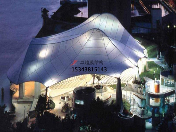 膜結(jié)構(gòu)建筑作為一種建筑體系所具有的特性主要取決于其獨特的形態(tài)及膜材本身的性能。恰由于此,用膜結(jié)構(gòu)可以創(chuàng)造出傳統(tǒng)建筑體系無法實現(xiàn)的設(shè)計方案。