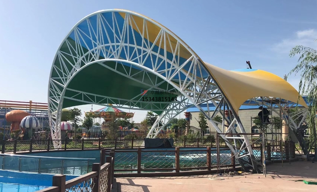 水上樂(lè)園膜結(jié)構(gòu)的設(shè)計(jì),首先是對(duì)美學(xué)與功能性的雙重追求。設(shè)計(jì)師們通過(guò)巧妙的構(gòu)思,將膜材料的柔韌性與現(xiàn)代建筑美學(xué)相結(jié)合,創(chuàng)造出既符合水上樂(lè)園主題,又能與自然環(huán)境和諧共生的建筑形態(tài)。這些膜結(jié)構(gòu)往往以流線型、波浪形等動(dòng)態(tài)元素為主,不僅增強(qiáng)了樂(lè)園的視覺沖擊力,還寓意著水的靈動(dòng)與活力。