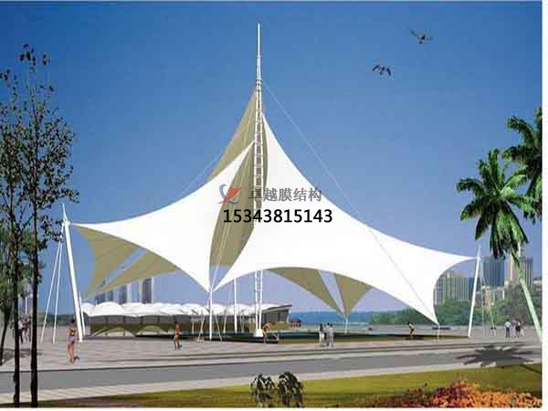 2、標(biāo)志性小品: 一個(gè)城市的中心區(qū)反映一個(gè)城市的地理風(fēng)貌和民族風(fēng)情,同時(shí),也是一個(gè)城市文化發(fā)展程度的標(biāo)志。而景觀設(shè)計(jì)要求其具有廣泛的可讀性、雅俗共賞,既有超凡脫俗的藝術(shù)價(jià)值,又能使大眾喜聞樂見與大眾息息相通,膜結(jié)構(gòu)以其鮮明的個(gè)性和標(biāo)識(shí)性,應(yīng)用于城市小品設(shè)計(jì)中。