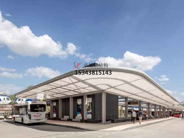 膜結(jié)構(gòu)遮陽(yáng)棚由立柱和頂棚構(gòu)成。立柱多由金屬合金制作,如鋼,鋁等,質(zhì)量輕且質(zhì)地硬,頂棚則是由膜結(jié)構(gòu)材料制成。