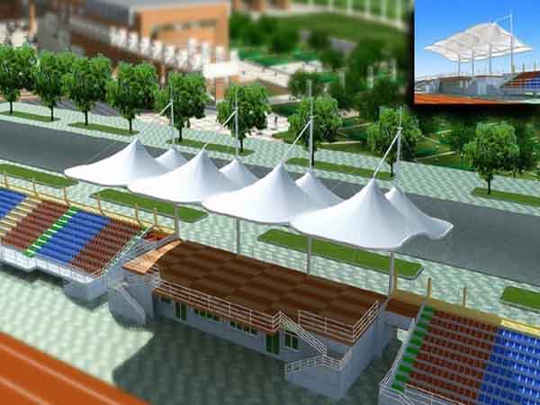 2、上饒廣播電視大學(xué)張拉膜看臺(tái)罩棚