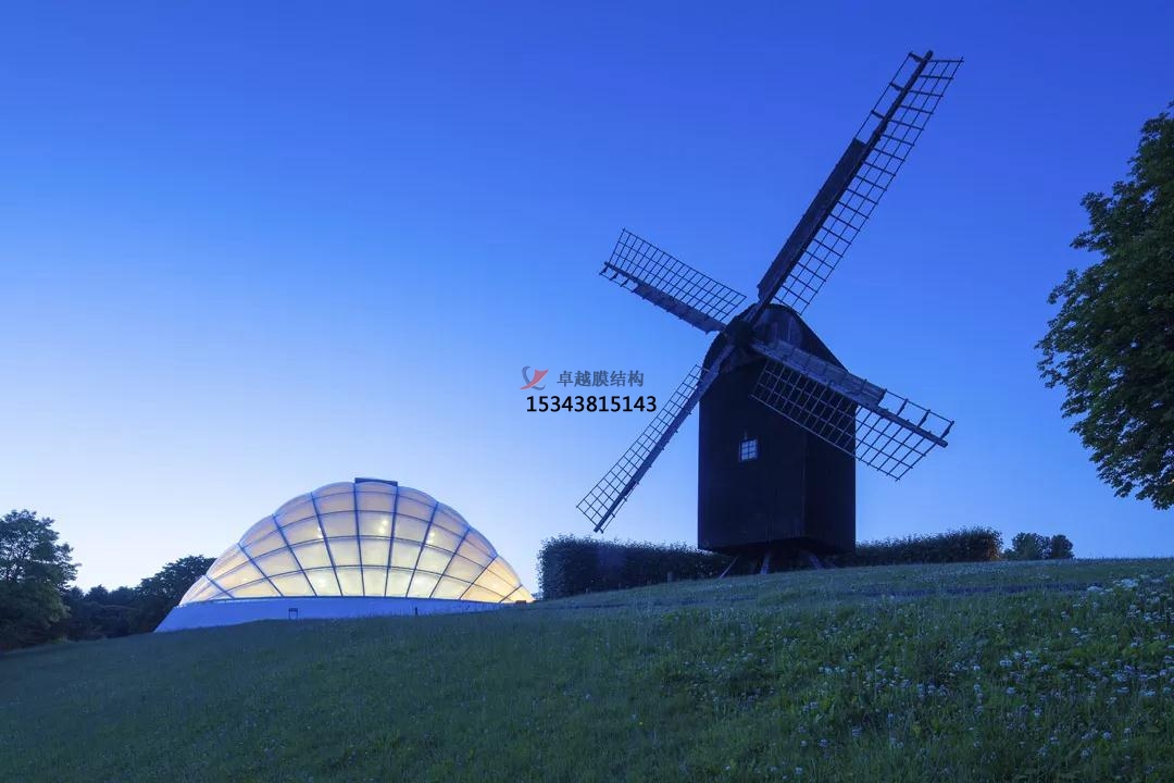 膜結(jié)構(gòu)幕墻是膜結(jié)構(gòu)在建筑外圍護結(jié)構(gòu)的應(yīng)用,具有膜結(jié)構(gòu)的共同特點和優(yōu)點:膜結(jié)構(gòu)是一種非傳統(tǒng)的全新結(jié)構(gòu)形式。充滿張力且富于變化的曲面,自由靈活的大空間,透明、半透明膜材所形成的明亮而又柔和的室內(nèi)環(huán)境,桅桿、拉索、精致的金屬節(jié)點等所體現(xiàn)的富有現(xiàn)代氣息的構(gòu)造技術(shù),這些特色使膜結(jié)構(gòu)為人們提供了有別于傳統(tǒng)結(jié)構(gòu)的全新視覺感受,為建筑設(shè)計(包括建筑環(huán)境設(shè)計)提供了前所未有的廣闊空間和許多新的可能性。