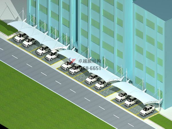 膜結(jié)構(gòu)停車棚主要應(yīng)用于各類商業(yè)地產(chǎn)、住宅樓、寫字樓、火車站、機場、下沉式廣場等遮陽遮雨棚,我司是
