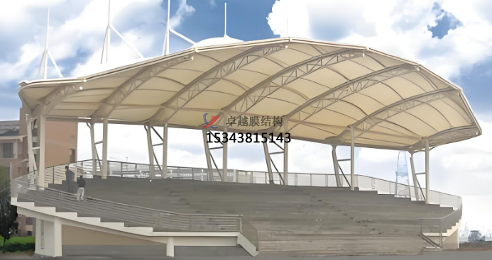 膜結(jié)構(gòu)舞臺(tái)廣泛應(yīng)用于大型演出、體育賽事、展覽展示等場(chǎng)合。在大型演出和體育賽事中,可用于搭建臨時(shí)看臺(tái)、運(yùn)動(dòng)員休息區(qū)等,為觀眾和運(yùn)動(dòng)員提供舒適空間。在展覽館、會(huì)展中心等場(chǎng)所,可作為展示空間的覆蓋或支撐結(jié)構(gòu),營(yíng)造出獨(dú)特的展示環(huán)境。例如,北京奧運(yùn)會(huì)開幕式上的臨時(shí)看臺(tái)、國(guó)內(nèi)外音樂節(jié)和戲劇節(jié)的舞臺(tái)設(shè)計(jì),都采用了膜結(jié)構(gòu),以其獨(dú)特的視覺效果和靈活多變的布局,為觀眾帶來沉浸式體驗(yàn)。如音樂會(huì)、戲劇表演、舞蹈演出等,其獨(dú)特造型和光影效果能提升演出視覺效果,增強(qiáng)觀眾沉浸感。