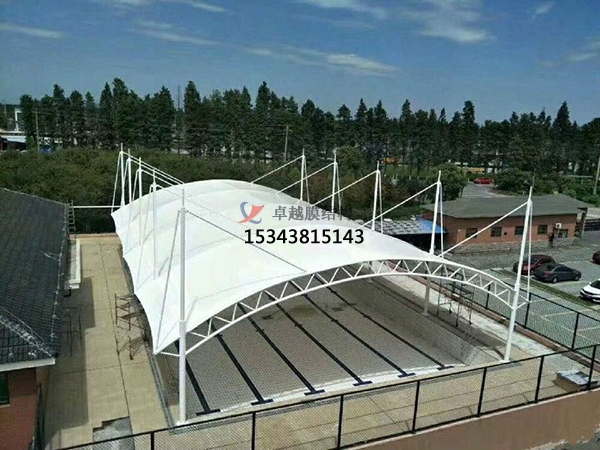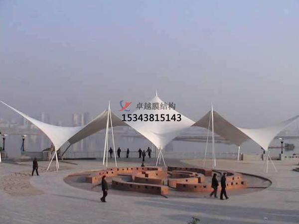 1)張拉式膜結(jié)構(gòu)。這也是現(xiàn)在比較常見的一種,主要以膜材、鋼索及支柱構(gòu)成,是更能夠展現(xiàn)出膜結(jié)構(gòu)創(chuàng)新美觀造型的形式。