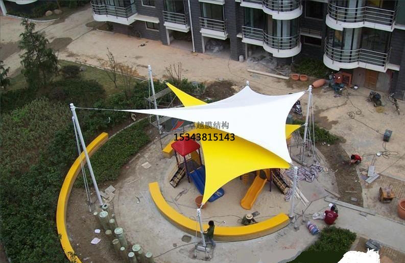 膜結構景觀又叫張拉膜結構景觀(Tensioned Membrane structure), 是以建筑織物,即膜材料為張拉主體,與支撐構件或拉索共同組成的結構體系,它以其新穎獨特的建筑造型,良好的受力特點,成為大跨度空間結構的主要形式之一。