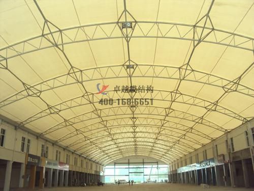 工程結(jié)構(gòu)形式:骨架張拉商場頂棚膜結(jié)構(gòu)