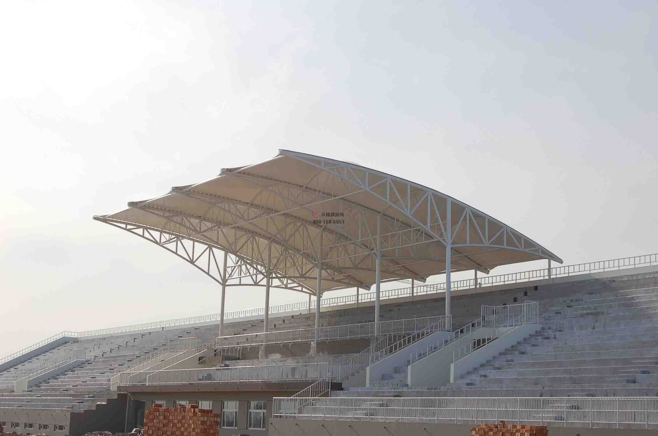 膜結(jié)構(gòu)作為大跨度體育場和體育場館的主要受力構(gòu)件和新型屋面體系,直接影響著建筑的安全性和功能。目前,膜結(jié)構(gòu)體育場看臺在我國得到了廣泛的應(yīng)用。膜結(jié)構(gòu)建筑能很好地覆蓋整個看臺。膜結(jié)構(gòu)的張拉式使建筑的空間跨度更大,同時降低了建筑的整體重量,使建筑更容易、更安全。這也是人們選擇膜結(jié)構(gòu)的重要原因。