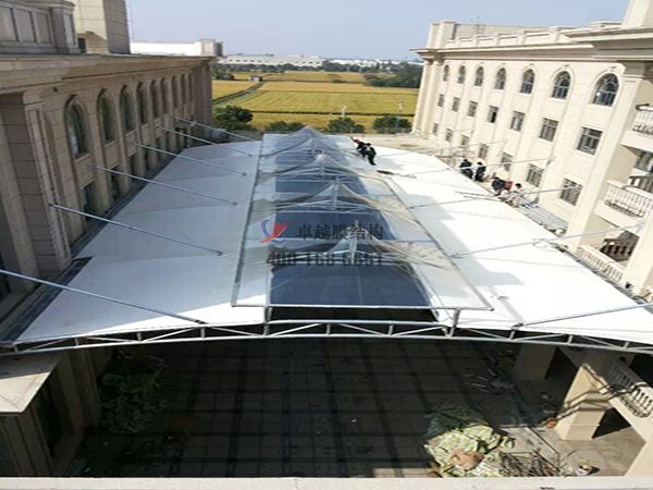 東營市卓越是東營市地區(qū)一個(gè)專業(yè)的膜結(jié)構(gòu)生產(chǎn)廠家,具有膜結(jié)構(gòu)設(shè)計(jì)一級資質(zhì)、膜結(jié)構(gòu)施工二級、鋼結(jié)構(gòu)設(shè)計(jì)乙級資質(zhì),鋼結(jié)構(gòu)承包三級資質(zhì),我公司專業(yè)承接?xùn)|營市商場膜結(jié)構(gòu)、商業(yè)街頂蓋膜結(jié)構(gòu)、步行街走廊頂棚、罩棚、遮陽棚、雨棚的設(shè)計(jì)與施工,卓越公司擁有專業(yè)的鋼結(jié)構(gòu)加工車間、膜材加工車間,從商場膜結(jié)構(gòu)設(shè)計(jì)、結(jié)構(gòu)計(jì)算、基礎(chǔ)預(yù)埋件施工,構(gòu)件加工到施工安裝一條龍管家式服務(wù),全部為廠家直銷,價(jià)格合理是我們的優(yōu)勢!東營市全市范圍內(nèi)有多家案例,歡迎廣大客戶來電咨詢洽談。
