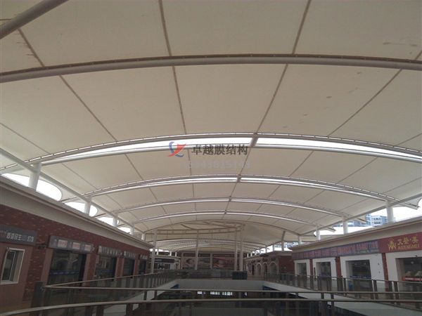 昌吉商場膜結(jié)構(gòu)、商業(yè)街頂蓋膜結(jié)構(gòu)、步行街走廊頂棚、罩棚、遮陽棚、雨棚工程案例