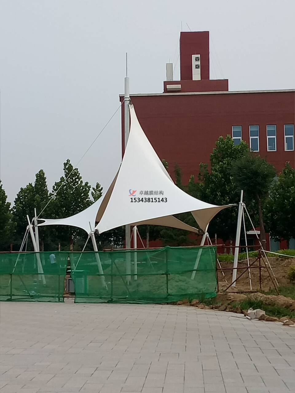 PVC膜材是一種經(jīng)濟實惠的膜材,由聚脂纖維織物加上PVC涂層(聚氯乙烯)而成。它的材質(zhì)柔軟,易于施工,但耐用年限較短,一般在5~8年。為了改善其耐候性,近年來已研發(fā)出在PVC涂層材的表面處理上做氟素系樹脂涂層的膜材