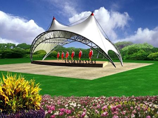 膜結(jié)構(gòu)舞臺(tái)工程能供給五顏六色的用處,并與園林景觀、公園景觀溶為一體,發(fā)明出讓人們盡情享用的快樂(lè)空間,充分展示了景觀膜結(jié)構(gòu)構(gòu)件明晰受力的藝術(shù)之美,它美妙的整合了周圍的環(huán)境,帶給人們一種顯貴典雅、浪漫溫馨之感。其他因?yàn)槟げ牧媳旧硖赜械娘@色性,在夜間彩燈的映射下能構(gòu)成美麗的景觀。 不只給人們供給遮陽(yáng)避雨的空間,也因?yàn)檫@種生動(dòng)活潑的造型能給人們帶來(lái)時(shí)尚、精約的休閑感觸,所以廣受群眾歡迎。