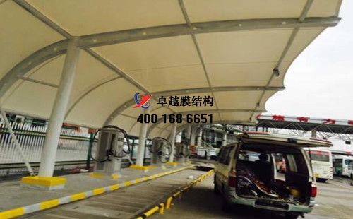 膜結(jié)構(gòu)充電站樁車棚設(shè)計(jì)、施工案例,我們在長沙承接了長沙市公共交通有限公司、長沙飛升新能源科技有限公司、長沙南站