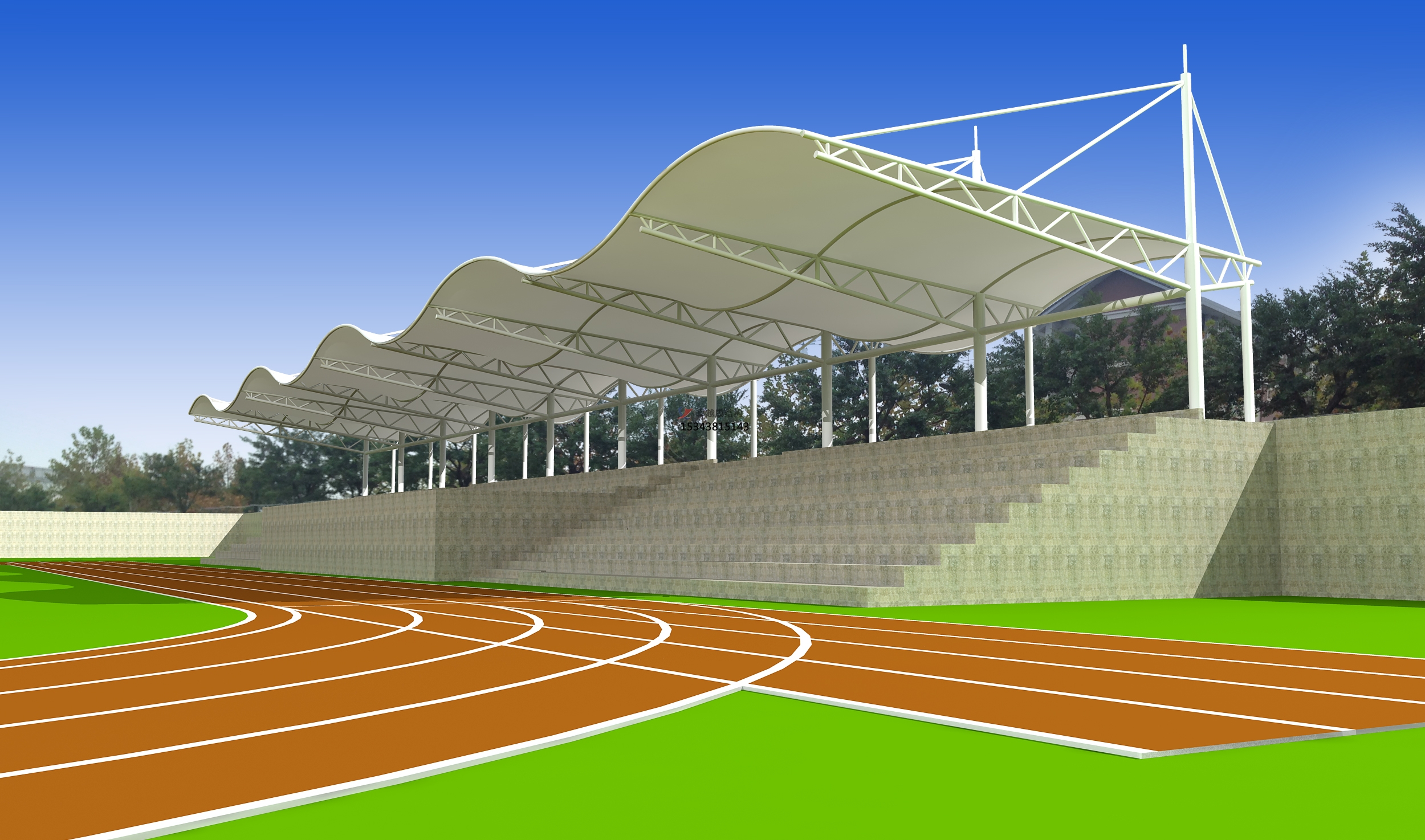 2、 浙江警官職業(yè)學(xué)院張拉膜看臺(tái)遮陽篷