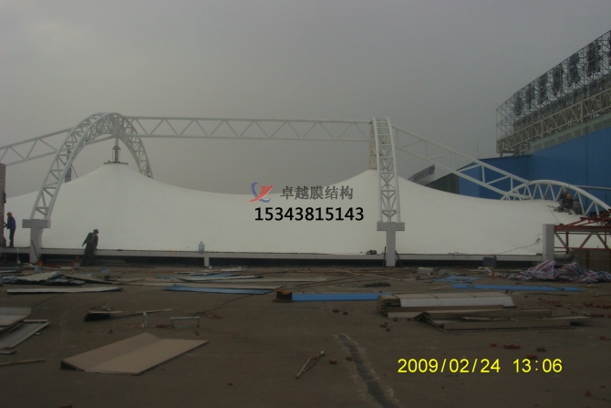 膜結(jié)構(gòu)是一種建筑與結(jié)構(gòu)結(jié)合的結(jié)構(gòu)體系,是采用高強(qiáng)度柔性薄膜材料與輔助結(jié)構(gòu)通過一定方式使其內(nèi)部產(chǎn)生一定的預(yù)張應(yīng)力,并形成應(yīng)力控制下的某種空間形狀,作為覆蓋結(jié)構(gòu)或建筑物主體,并具有足夠剛度以抵抗外部荷載作用的一種窄間結(jié)構(gòu)類型。