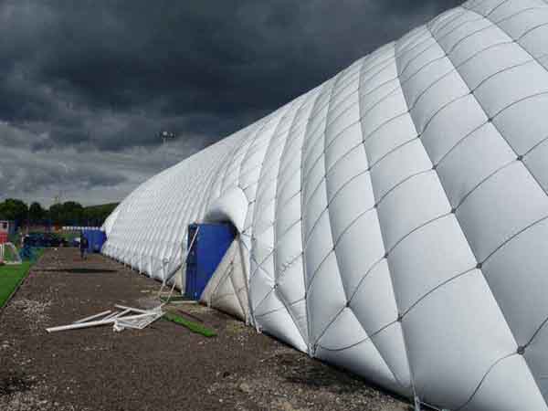 空間,并在氣膜表面形成巨大的張力。即使有漏風(fēng),也不會倒塌。氣膜樓上層建筑離地面約需30分鐘,距離地面約2米,且有足夠的時間確保氣膜貯
