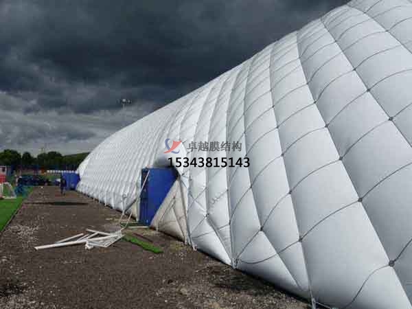 充氣膜體育館是用特殊的建筑膜材做外殼,配備一套智能化的機(jī)電設(shè)備在氣膜建筑內(nèi)部提供空氣的正壓,把建筑主體支撐起來(lái)的一種建筑結(jié)構(gòu)系統(tǒng)。