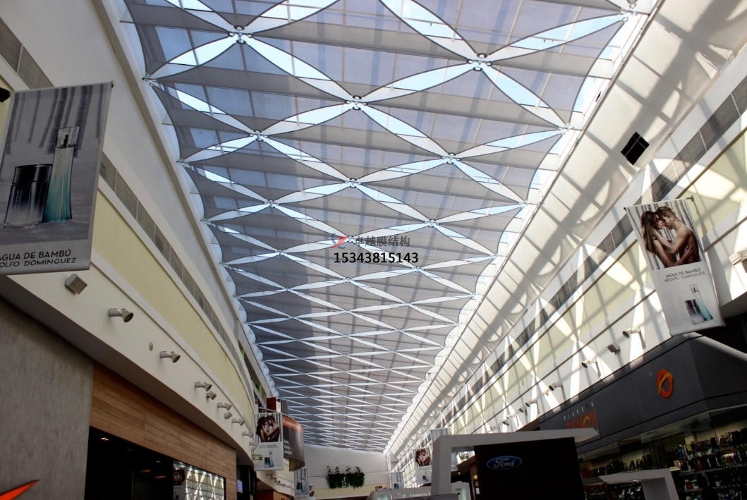 此外,PTFE膜結(jié)構(gòu)的薄膜具有一定的透光性,能夠有效利用自然光線,降低室內(nèi)照明能耗,能夠遮擋紫外線和紅外線,減少太陽(yáng)輻射對(duì)建筑內(nèi)部的熱負(fù)荷,實(shí)現(xiàn)能源的節(jié)約和環(huán)境的保護(hù);而且PTFE膜結(jié)構(gòu)能夠通過不同的張拉和固定方式,創(chuàng)造出各種形態(tài)的建筑設(shè)計(jì)。它可以形成曲線、弧線、折線等多樣化的形狀,滿足建筑師對(duì)于獨(dú)特外觀和創(chuàng)新設(shè)計(jì)的需求。