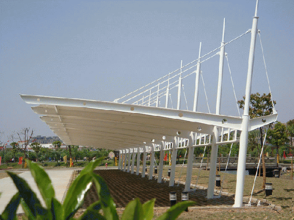 索膜建筑之所以能滿足大跨度自由空間的技術(shù)要求,更關(guān)鍵的一點就是其有效的空間預(yù)張力系統(tǒng)。有人把索膜建筑稱為“預(yù)應(yīng)力軟殼”,是預(yù)應(yīng)力使“軟殼 ” 各個部分在個中更不利荷載下的內(nèi)力始終大于零(永遠(yuǎn)處于張拉拉伸狀態(tài)),從而使”軟殼“成為空間整體工作的結(jié)構(gòu)媒體和建筑圍合材料,使得索膜建筑富有迷人的張力曲線和變幻莫測的空間,使體系得以覆蓋大面積,大跨度無柱自由空間,并且可以抵抗狂風(fēng),大雪等不利荷載狀況。