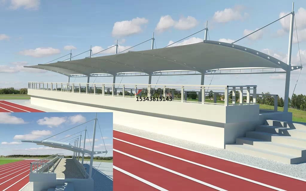 張拉膜看臺(tái)主要用于各類地方體育場主席臺(tái)雨棚,各類學(xué)校體育場看臺(tái)雨棚遮蓋,我公司是國內(nèi)較早從事大懸挑張拉膜結(jié)構(gòu)看臺(tái)設(shè)計(jì)施工的專業(yè)廠家,下面介紹一下我們在濮陽縣周邊縣市完工的一些張拉膜看臺(tái)設(shè)計(jì)施工案例,我公司先后在濮陽縣周邊承接了濮陽縣第三中學(xué)膜結(jié)構(gòu)看臺(tái)雨篷/主席臺(tái)/舞臺(tái)安裝雨棚、濮陽縣實(shí)驗(yàn)中學(xué)張拉膜張拉膜看臺(tái)罩棚、濮陽縣教師進(jìn)修學(xué)校張拉膜看臺(tái)遮陽棚等設(shè)計(jì)施工項(xiàng)目,簡介如下: