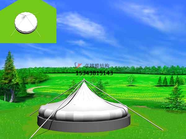 索膜結(jié)構(gòu)反吊膜形式介紹:常見的索膜結(jié)構(gòu)反吊膜主要有鋼支撐和懸索反吊兩種形式。其中鋼支撐反吊膜的原理是指池體上面以鋼結(jié)構(gòu)為支撐,膜材反吊在鋼結(jié)構(gòu)下部,可防止鋼結(jié)構(gòu)被腐蝕,充分發(fā)揮鋼材的結(jié)構(gòu)性能和膜材的抗腐蝕性能,延長結(jié)構(gòu)的使用年限。懸索反吊膜是利用單層膜材將污水池直接封閉,膜材通過鋼構(gòu)連接件錨固在周邊池壁或鋼結(jié)構(gòu)上,再利用懸索、懸桿可調(diào)壓力將膜面中心壓低,呈漏斗狀,懸桿底部留排水孔,利用法蘭與主體膜連接,形成穩(wěn)定的受力結(jié)構(gòu)。
