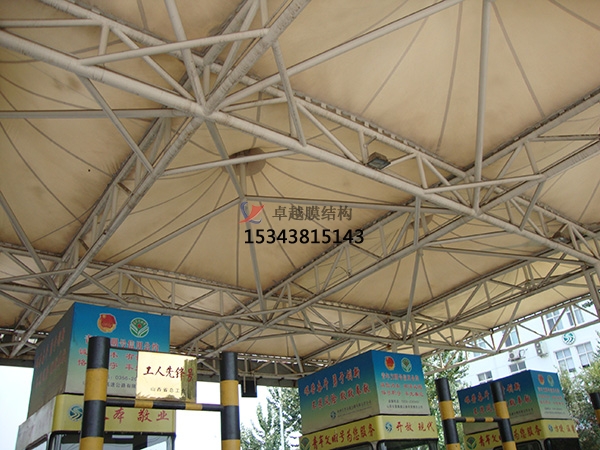 1.耐久性:由于高強(qiáng)度膜材料的出現(xiàn)和張拉技術(shù)的應(yīng)用,膜結(jié)構(gòu)車棚的抗風(fēng)雨能力是普通雨蓬無法比擬的。有些車棚使用長效膜材料,可使用30-40年。特別是在惡劣的暴風(fēng)雨天氣,膜結(jié)構(gòu)保持牢固和無損。