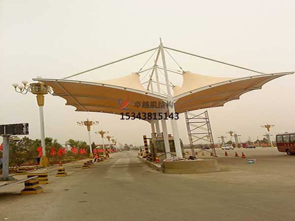 3.安全性更佳。總結(jié)上述幾點(diǎn)如:防火防震、耐候性、穩(wěn)定性等都足以說明膜結(jié)構(gòu)收費(fèi)站相比傳統(tǒng)的收費(fèi)站在安全方面更為突出,即使發(fā)生災(zāi)害使膜結(jié)構(gòu)坍塌,由于膜材的輕質(zhì)與整體結(jié)構(gòu)的簡單,也不會(huì)造成損失。